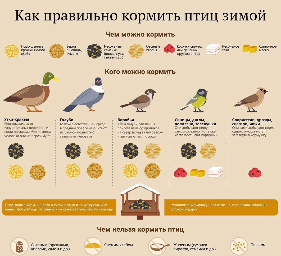 Помочь перезимовать птицам может каждый, это не так сложно. Нужно всего-то смастерить кормушку, а лучше несколько. Например, взять коробку из-под сока или кефира, сделать отверстие сбоку, насыпать нежареных семечек или зерна и повесить кормушку на дерево. А можно проявить фантазию и смастерить кормушку из других материалов, например, из фанеры или досок. Главное, чтобы и птицы были сыты, и мастер был доволен.